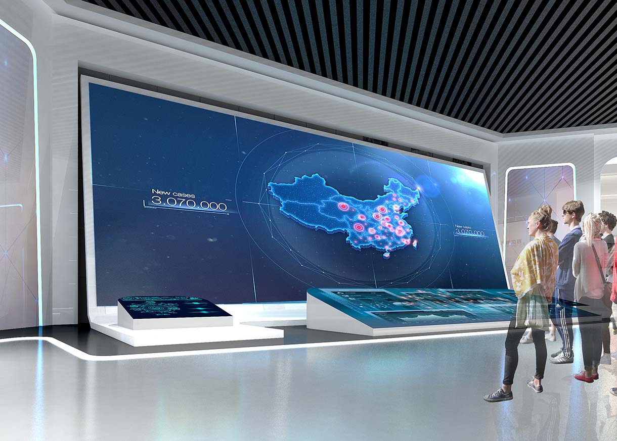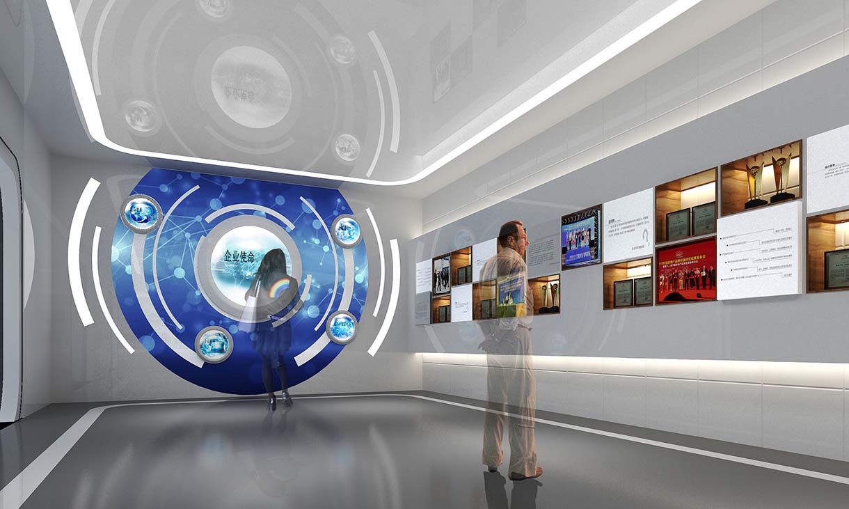 展示設(shè)備規(guī)劃:柱形顯示屏+互動(dòng)滑軌+交互一體機(jī)