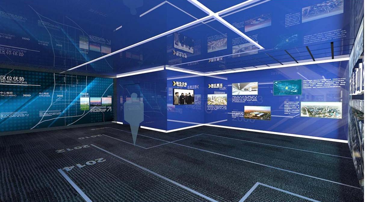 本項目中將采用多個LED顯示屏為內容載體,由PAD系統控制,可逐個點亮LED設備,展示園區各個時間節點的發展大事記,引導客戶逐個觀賞,最終匯集到園區愿景展望區。