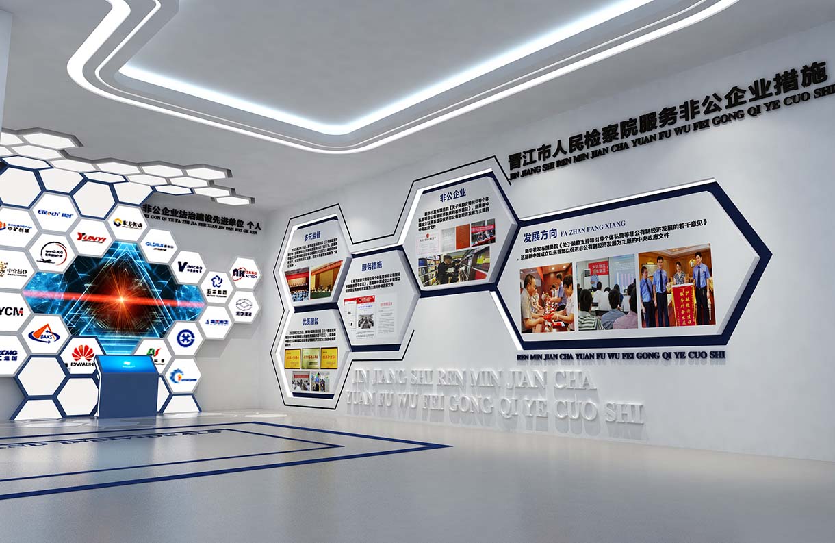 項目介紹:晉江人民檢察院黨建展廳是晉江市任命檢察院打造的黨建展示區(qū)及非公企業(yè)普法展示區(qū),項目將通過案例展示及法律普及,進一步提升晉江市非公企業(yè)家與員工的法律意識,增強區(qū)域法治競爭力。