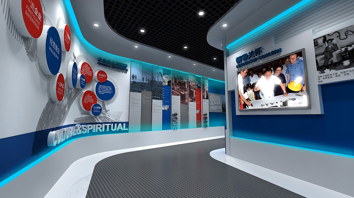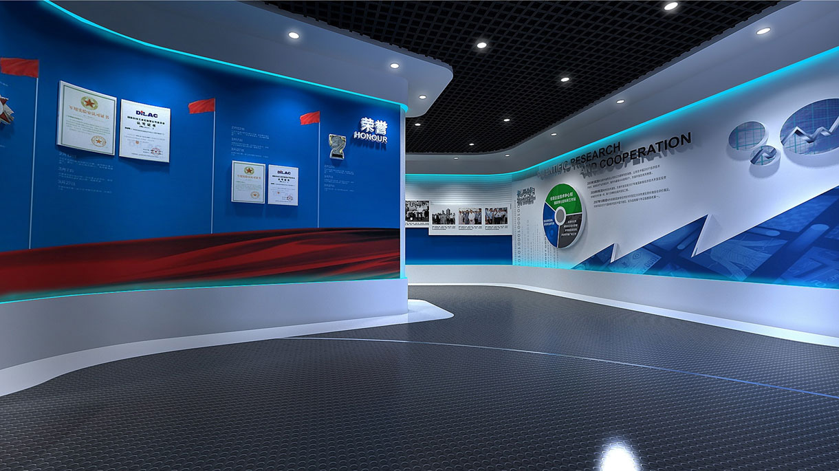展廳設計緊緊圍繞企業發展歷程、科研與合作成果及生產實驗能力等內容進行。展廳設計風格將凸顯科技感與現代化特點,使用多媒體弧幕配合企業產品功能演示,同時結合展墻展板立體剪影展示方式將企業“技術+資本”、“合作+發展”的發展戰略與技術跨越和設備成就鮮明的展示給參觀者,突出企業“一流產品、一流服務、一流企業”的經營理念。