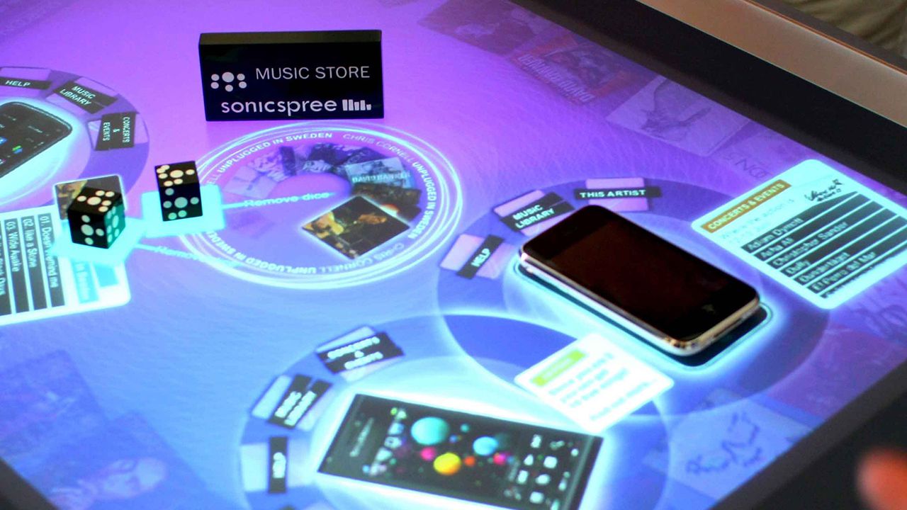 物體識別桌本質上就是互動桌面系統(tǒng)互動桌面系統(tǒng)主要由成像模塊、圖像處理服務器及觸控模塊組成。成像模塊在桌面上呈現出大幅畫面,與之關聯(lián)的觸控設備則采集人的手指在屏幕上的坐標信息。